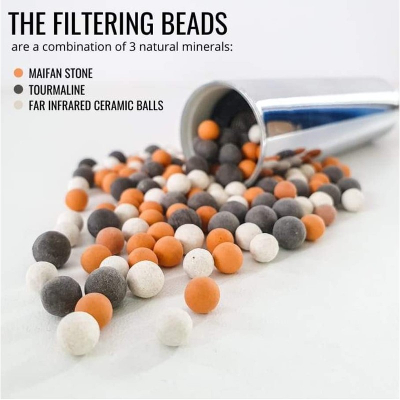 - GET 3 KINDS OF FILTER BEADS - This set of refillable filters comes with extra mineral beads to remove water impurities, soften and purify your shower water. Mmde of high quality health stone, which is a kind of natural elements essential for the body. Perfect for the Ionic 2.0 Shower Head. Comes with extra filter beads to keep your shower running like new.
