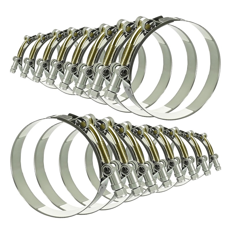 • 8 Sizes (1"-3") in 1 Kit - Save Time & Money: Get 16 heavy-duty T-Bolt clamps covering 1", 1.25", 1.5", 1.75", 2", 2.5", 2.75", 3". One complete set replaces searching for single sizes, perfect for automotive, radiator, and industrial hose repairs.