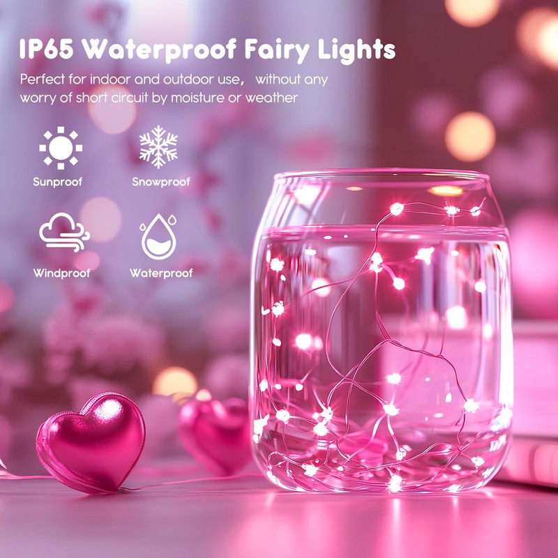 - 【 Safe to Touch and Waterproof 】- The pink silver wire firefly lights are low power and insulate heat, remaining safe to the touch. They run very cool, no need to worry about them overheating and damaging your home’s décor. Also, they are IP44 waterproof and can be taken outdoors as well. Enjoy these beautiful glowing mini fairy lights inside your bedroom or outdoors on your patios, or balconies