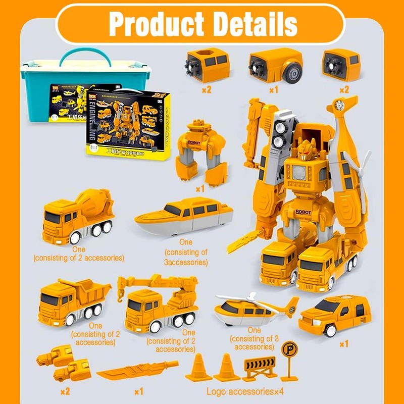 - Creative educational toy: construction site vehicles car toy set offers the opportunity to learn science, technical, technical and mathematical concepts, learn about magnetism and work while experimenting with balance, stability and gravity. Assembled toy allows children to easily transform their cars into robots, and the magnetic design allows a seamless transition between vehicle and robot mode, stimulating their imagination and flexibility.