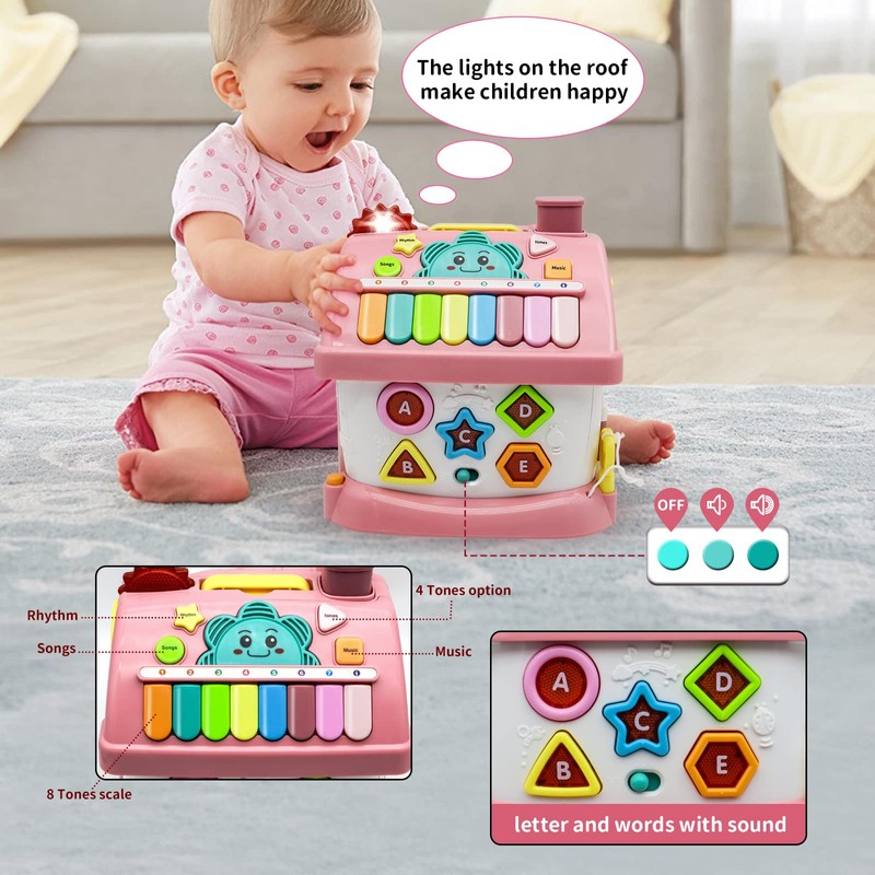 - Fun learning and EducationalThe montessori toys for 1 year old helps baby to practice fine finger skills by pressing different buttons.Each side of this learning house toy has different playing way that can help babies learn numbers, music theory and exercise their memory training, listening, hand-eye coordination development.