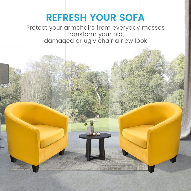 Mingfuxin 2 Pieces Tub Chair Covers,Upgraded 2 IN 1 Design Stretch Velvet Armchair Sofa Slipcover with Cushion Cover, Non Slip Club Bucket Chairs Sofa Couch Covers Slipcovers(Upgraded-Yellow, Velvet)