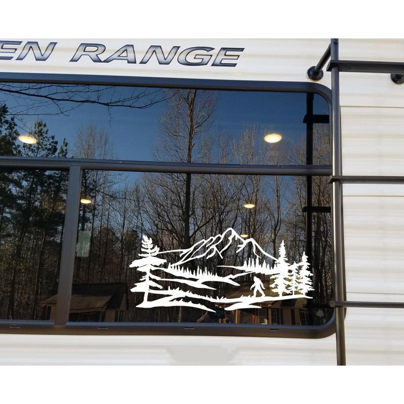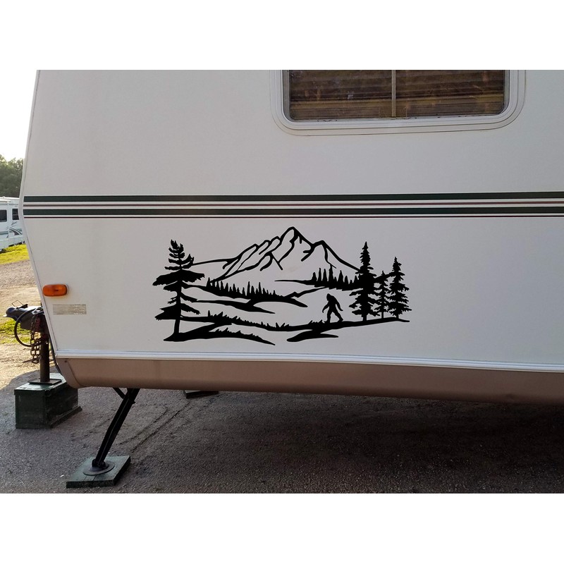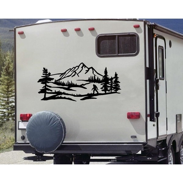 Minglewood Trading Black | Bigfoot Mountain Trees Scene V2 Vinyl Sticker | Camper RV Travel Trailer Graphics 4x4 | Die Cut Decal | 48w x 22h inches