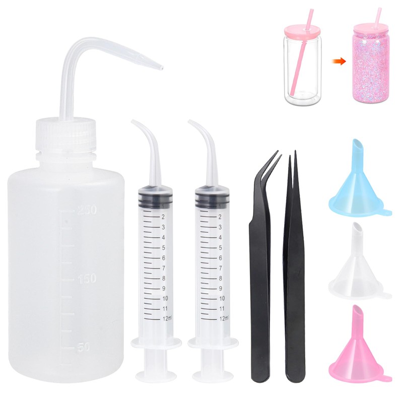 MingQiEven 8 Pack Snow Globe Tumbler DIY Kit - Includes Plastic Squeeze Bottle, Small Funnel, Tweezers, and Bent Syringe for Creative Cup Making