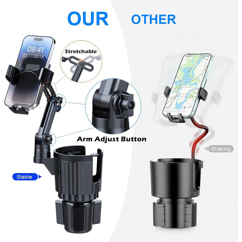 - 【Enhanced Stability】Gooseneck arms do not do a stable support phone and often wobble ,Our car cup holder mount with high-quality plastic mechanical arm ensures superior stability and sturdiness, providing a secure grip for your phone. Adjust the holder and phone to any angle for optimal navigation and entertainment.