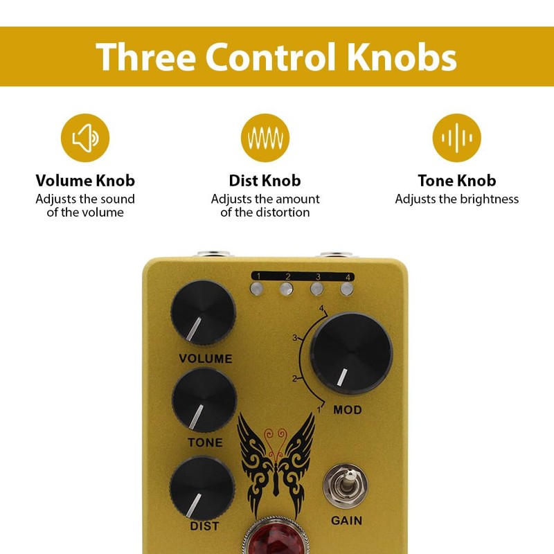- 【Gain Switch and 4-Mode Selector】: The pedal comes with a gain switch and a 4-mode selector switch, providing gain and adding more tone mode options. This allows for a wider range of sound effects, adding depth and complexity to your music.