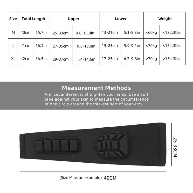 One arm sleeve equipped with individual fixed thickened elbow pad and forearm pad, which help absorb shock and resist impact. Our arm sleeves will provide full protection for your arms and reduce the risk of injury in combat sports.