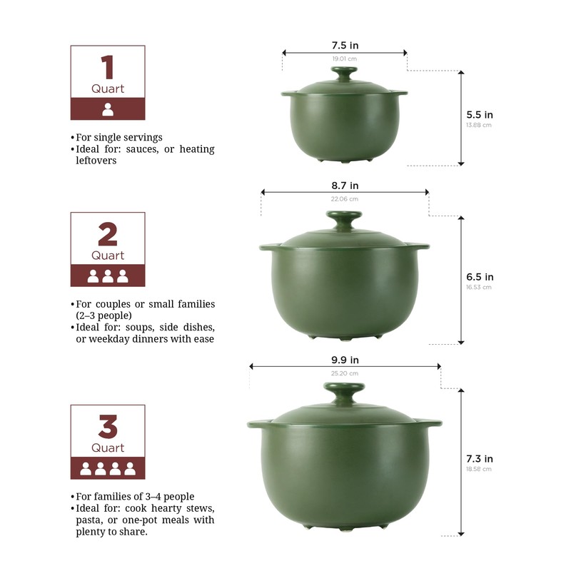 - SMALL SIZE OPTIONS: 1 Quart—Perfect for single servings, sauces, or reheating; 2 Quart—Great for couples or small families; 3 Quart—Ideal for 3–4 people, great for stews, pasta, or one-pot meals.