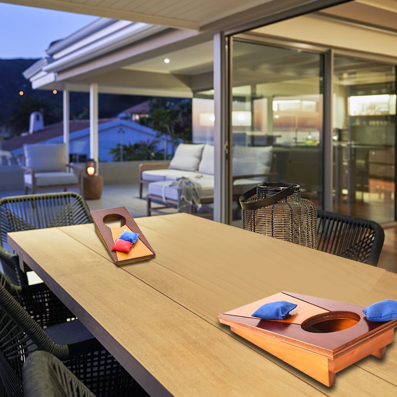 - APPLICABLE: The mini cornhole set is a perfect fit played on tabletops, desktops, and dining tables.