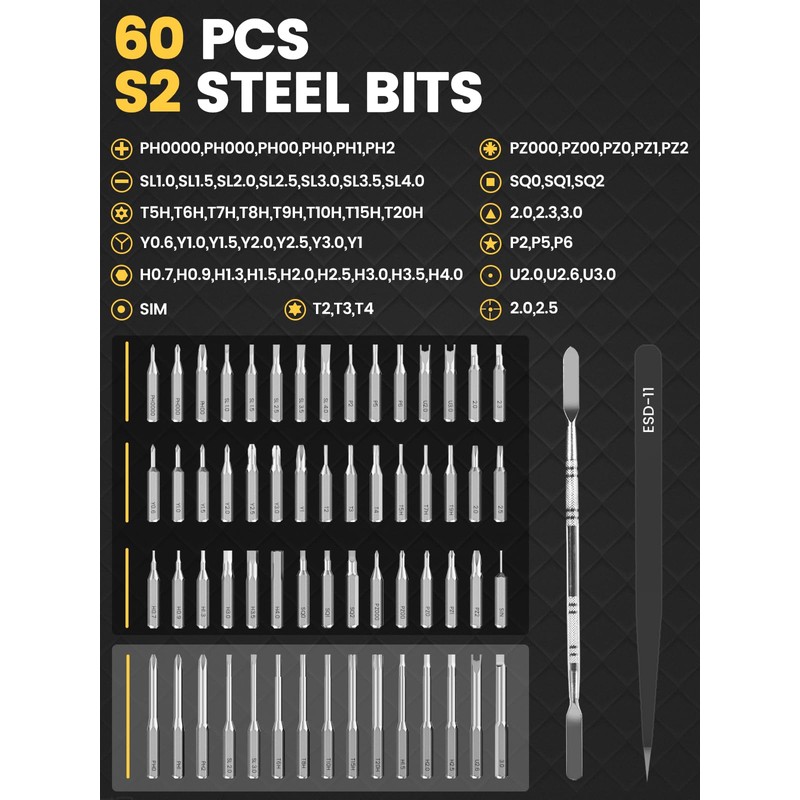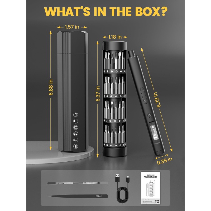 Mini 3.7V Electric Screwdriver – Precision Cordless Screwdriver Set with 62-in-1 Magnetic Bits, Rotatable Rack, 5/32'' Hex, Repair Tool Kit for Phone, Camera, Laptop, Watch, ELEC– 65pcs