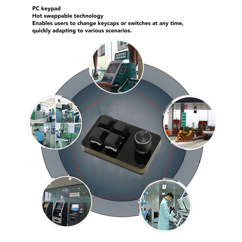 1、4 KEYS 1 KNOB: PC Keypad with knob allows users to perform more complex operations by adjusting the volume, screen brightness, or other related settings with the knob to enhance the user experience. 2、CUSTOMIZABLE MACRO PROGRAMMING: The keyboard supports customizable macro programming, which allows users to bind frequently used operations or specific commands to the keys to perform multi step operations with one key, improving work or gaming efficiency. 3、HOT SWAPPABLE: The keyboard supports hot swappable technology, which allows you to replace keycaps or switches at any time, eliminating the need to worry about the adaptability of the keyboard to different gaming or usage needs, and quickly adapting to a variety of scenarios. 4、BLUE SWITCH: Mechanical keyboard adopts blue switch design with distinctive touch, fast feedback and durability, which provides a strong competitive gaming experience by performing click and quick combo operations in games. 5、FLEXIBLE ARRANGEMENT: The keyboard adopts key and cable separation design, which allows users to arrange the keyboard lines more flexibly according to their own usage habits, reducing cable bunching and better organizing the desktop.