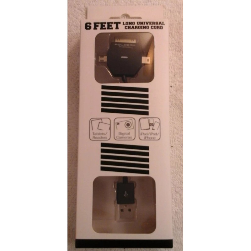 MINI 6' Candi Cord Tri-Connector USB Micro Mini Smartphone Charger Poldera Black NEW
