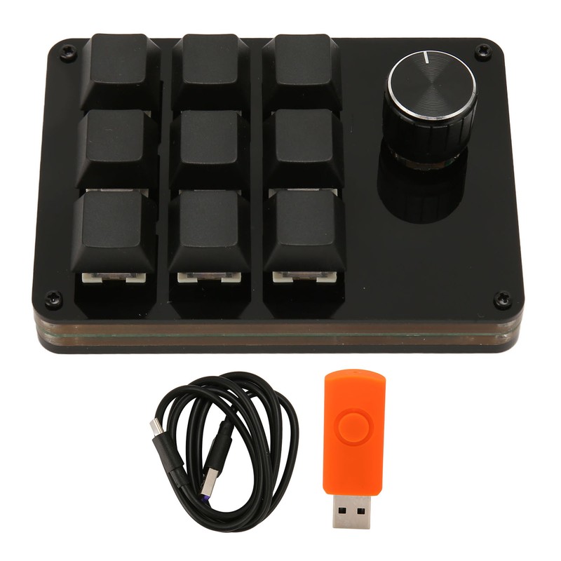 1、[9 Keys 1 Knob]: The 9 key 1 knob design allows users to perform more complex operations. Adjusting the volume, screen brightness, or other related settings via the knobs is easy and enhances the experience of using the keyboard. 2、[Custom Macro Programming]: The keyboard supports customizable macro programming, which allows you to bind frequently used operations or specific commands to keystrokes to perform multi step operations with a single key, improving the efficiency of your work or game. 3、[Hot Swappable Design]: The keypad adopts hot swappable technology, enabling users to change keycaps or shafts at any time to quickly adapt to various scenes. 4、[Blue Switch Mechanical Keyboard]: The mechanical keyboard adopts blue switch design with distinctive touch, fast feedback and durability, providing enhanced competitive gaming performance with clicking and quick combo operations in games. 5、[Key Line Separation]: The keyboard features a keyboard and cable separation design, allowing users to arrange the keyboard wiring more flexibly according to their own usage habits, reducing cable bunching and better organizing the desktop.