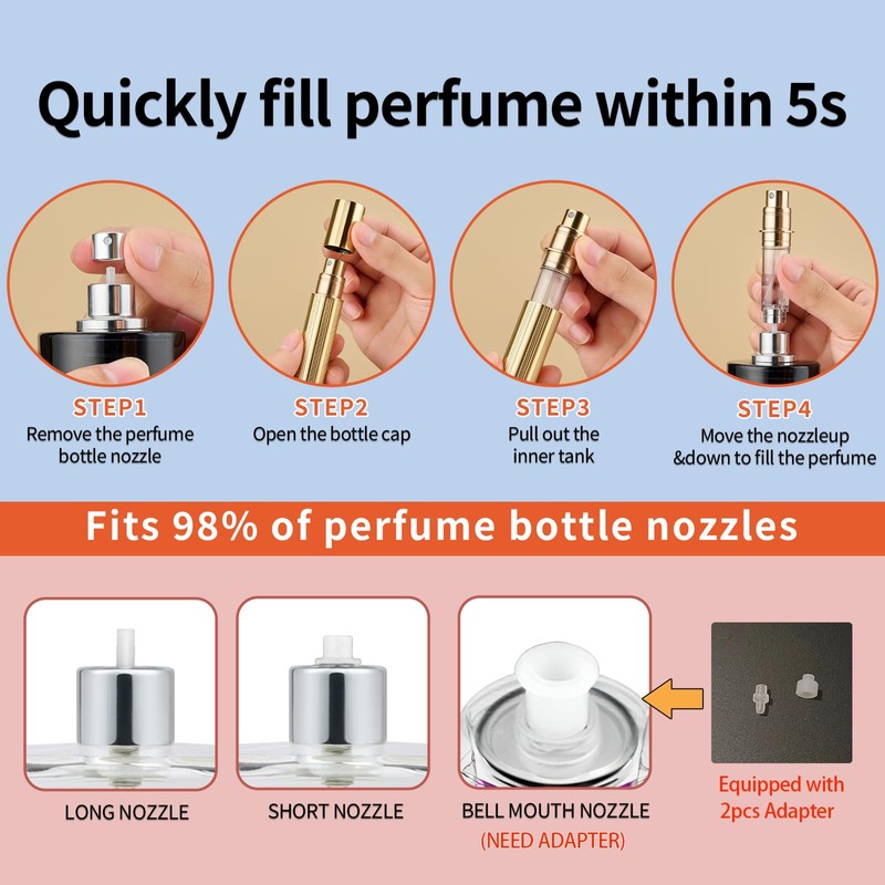 This refillable bottles can match most perfume bottles usually, and just in case, we will gift a set of c