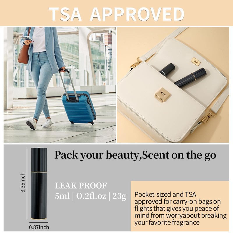 1. Package Includes: 1 x perfume travel refillable, 5ml capacity can spray over 85 times, last for 10-15 days, it is perfect for carrying a small amount of your favorite perfume or cologne or aftershave, etc.