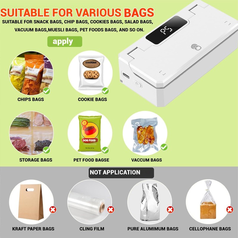 • [Preserves Food Freshness, Reducing Waste]: This bag resealer effectively extends the freshness of snacks, grains, and fruits by preventing air exposure and moisture entry, keeping your food dry and fresh for longer. It can be used as a chip bag sealer, snack sealer, or sandwich sealer, providing an all-in-one solution for food storage and organization. Perfect for preserving leftovers, this mini sealing machine ensures your food tastes its best while reducing food waste—a must-have tool for any family or traveler.