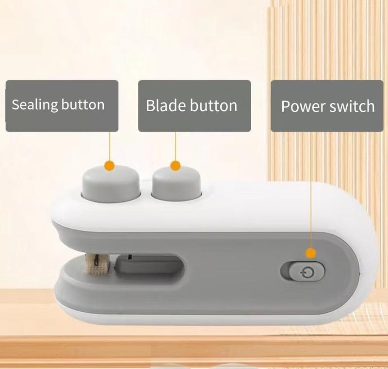 Mini Bag Sealer, USB-C rechargeable Bag Sealer, 2 in 1 Bag Sealer Heat Seal with Cutter and Magnet, Mini Bag Resealer Machine for Plastic Bags Snack Bags