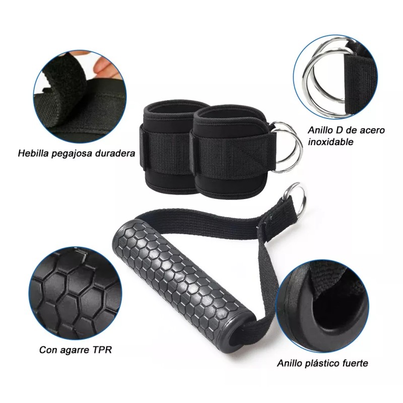 Polivalente-Perfecto para bandas de resistencia, gimnasios en casa y máquinas de cables, máquinas de ejercicios.Están diseñadas para bandas de alta resistencia y para entrenamiento con máquinas de cables.Ideal para maniobras laterales en máquina de poleas y otros ejercicios de elongación en soportes colgantes.