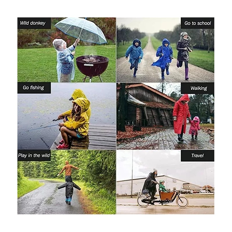 Exteriores: mangas largas, puños elásticos, capucha grande con cordones y broches para mantener secos los brazos, la cabeza y el cuello. Adecuado para todas las estaciones y actividades al aire libre como Disneyland, maratones, espectáculos, entretenimiento acuático, viajes, pasear perros, paseos en bote, pesca, caminatas, campamentos, ropa protectora de trabajo y más. Incluso un gran kit para disfraces y fotos de Halloween.