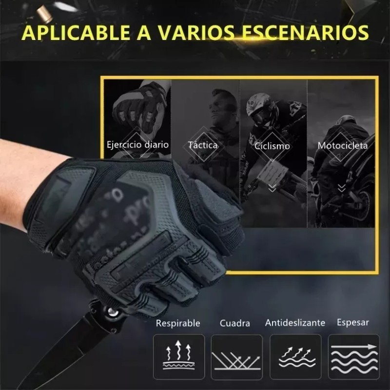 Propiedades: guantes protectores, antideslizantes, resistentes al desgaste, protectores de muñecas y nudillos