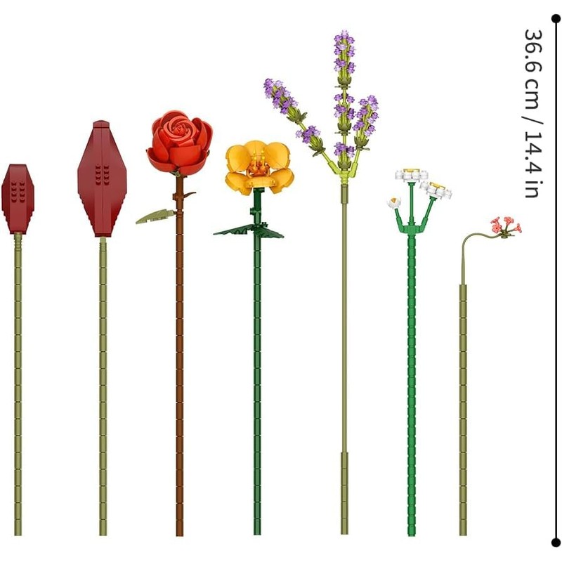 - Flowers Bouquet Building Set (574 Blocks): The Roses Flower Botanical Collection Building Blocks Toy contains 574 flower-themed blocks that allow you to create wonderfully realistic flower arrangements. The exquisite Flower Bouquet Building Blocks Set will brighten up your home, office or dorm room and bring the vibrant colors of nature indoors.