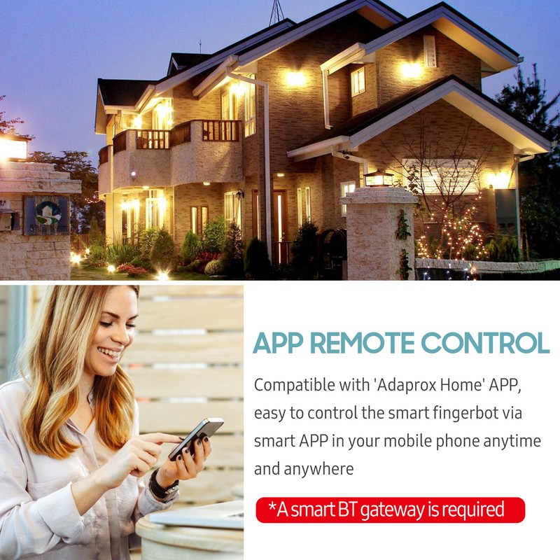 APP Control: Compatible with 'Adaprox Home' APP, easy to control the smart fingerbot via smart APP in your mobile phone anytime and anywhere.