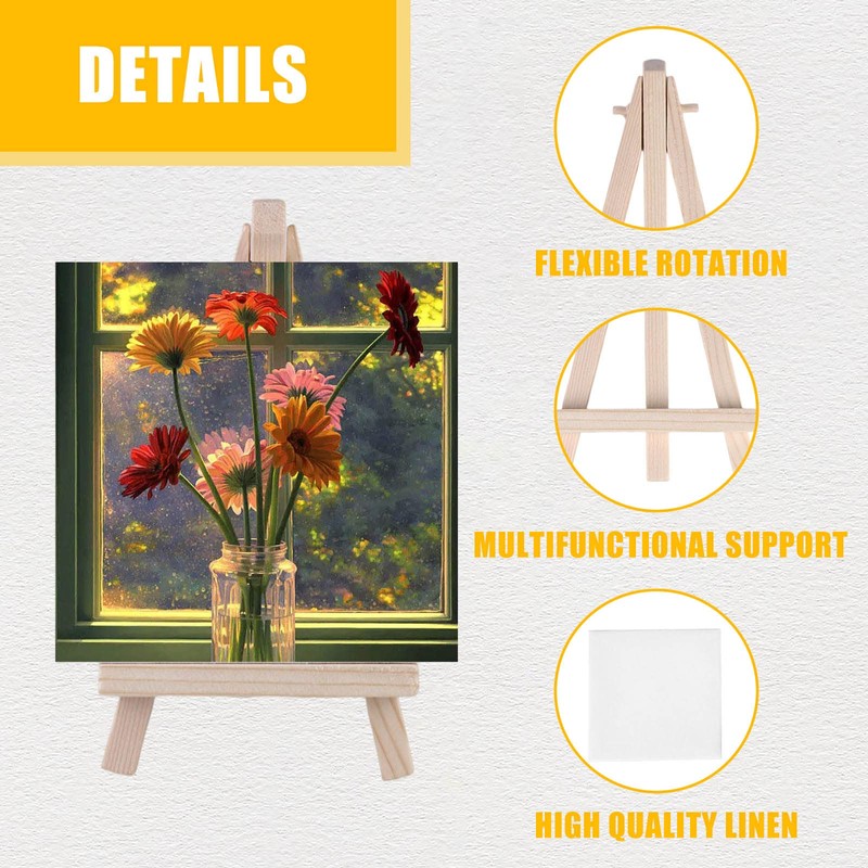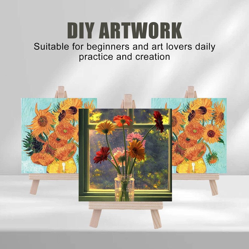 - Good stability: mini easel set, the frames are made of solid wood with over-locking connection, and the canvas sits firmly on it and does not loosen in any area. Perfect for beginners, children, crafts, gifts, art parties and art hobbies.