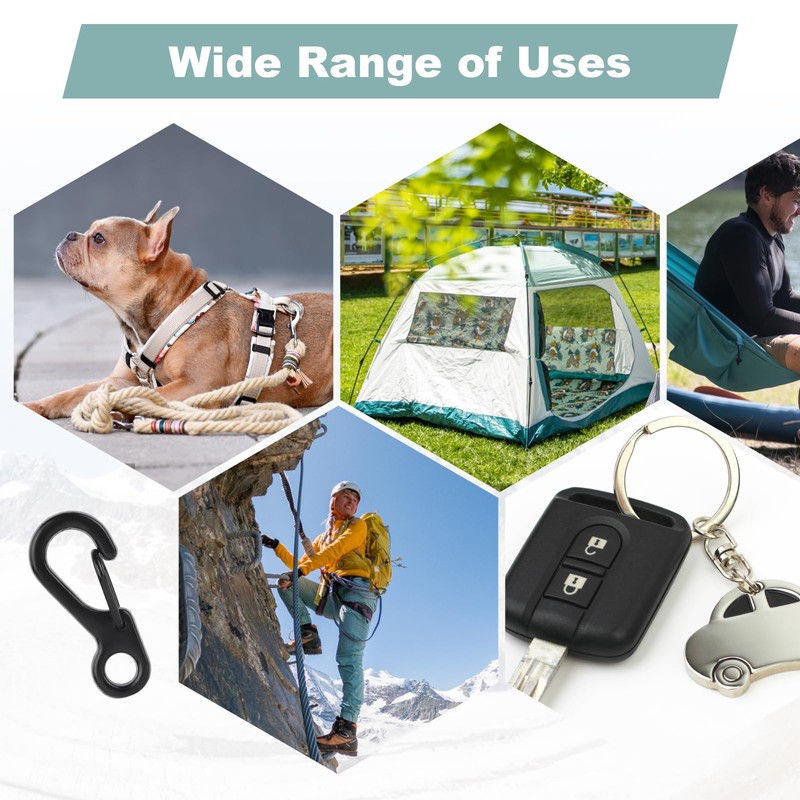 - Spring slidlock, quick interlinkage and disconnect of ropes chains keys or pet's tags.