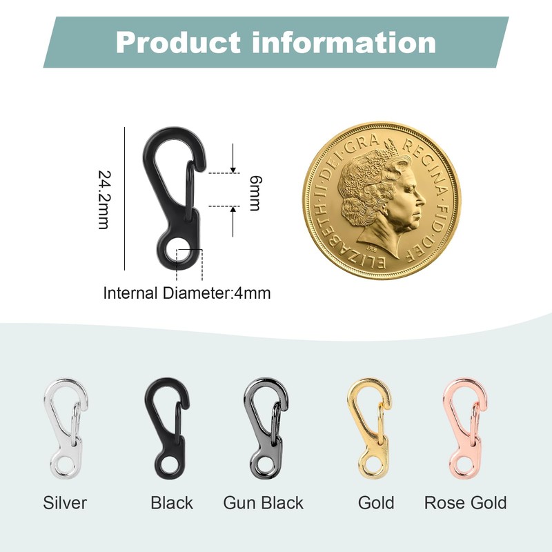 - Size : total size: 24.6mm, hole diameter: 4mm, opening gate 6mm