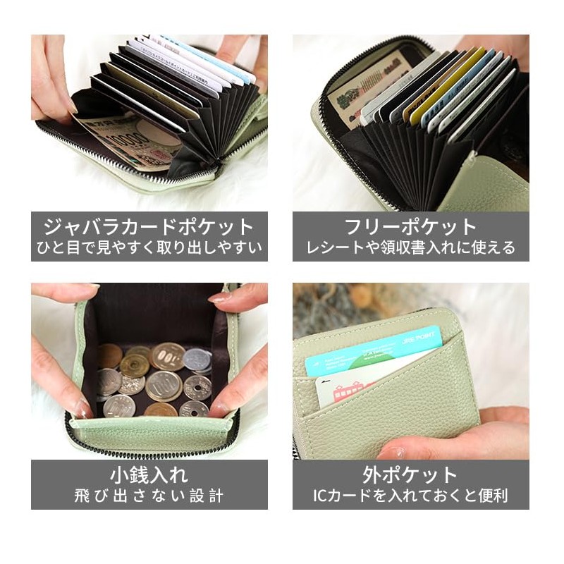 A multi-functional compact card case that combines an elegant design and practicality. ■ Available in a variety of colors, ranging from basic colors to trendy colors, the colors are attractive to match any occasion. Men, women, kids, teens, boys or girls everybody will love them! ■ High quality material: Made of high quality PU leather for durability and a good texture. This product can be used for a long time. ■ Excellent storage capacity: Organizes multiple cards and bills, holds up to 9 cards, and comes with a free pocket for convenient storage of bills and receipts. The box-shaped coin purse makes it easy to check out. ■ Compact and easy to carry; Lightweight in the palm of your hand, it fits smoothly in your bag or pocket, so it won't get in the way when you go out. ■ "Jabara" specifications, easy to see the contents and easy to put in and take out. It opens 180 degrees so you can easily see the contents inside. ■ External Pocket: External pocket is convenient for storing frequently used cards and parking tickets. ■ Specifications: Card pockets x 9, bill pocket x 1, free pocket x 1, box-type coin purse x 1, exterior pocket x 1