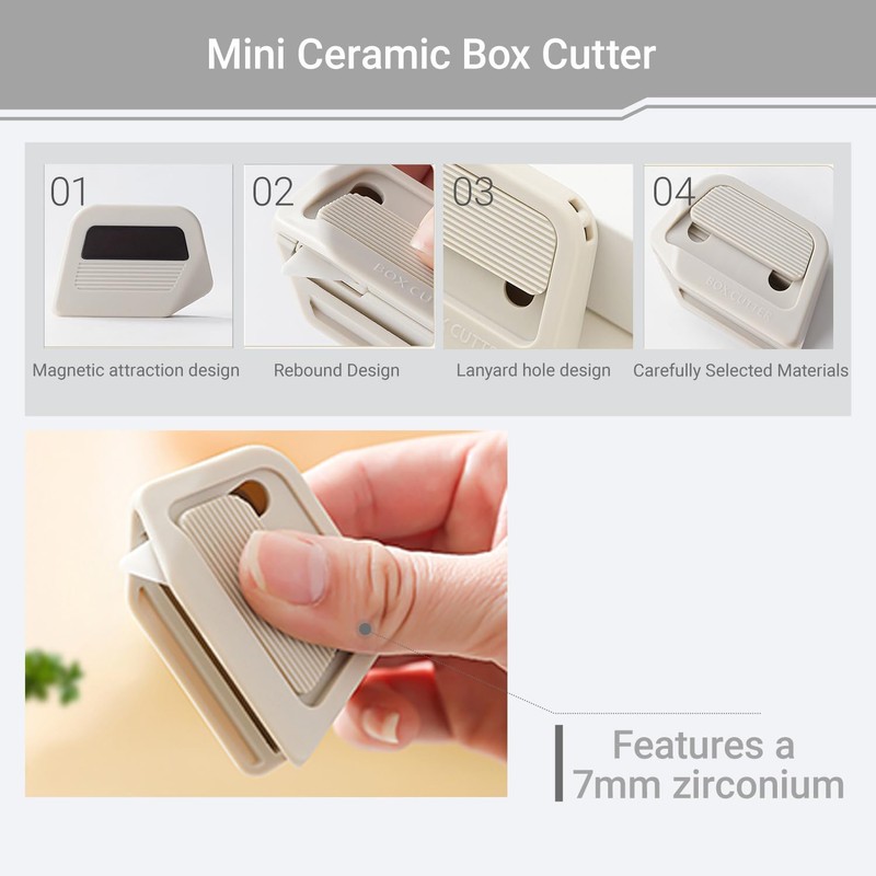 Mini Ceramic Box Cutter - Auto-Retractable 7mm Blade, Magnetic Package Opener, Compact Utility Knife for Mail, Crafts & DIY(2, white)