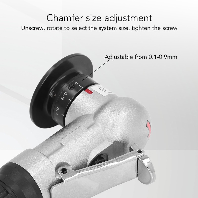 - ADJUSTABLE CHAMFER SPEED: The portable deburring trimming chamfering tool air grinder can freely adjust the speed you need. The air intake size can be adjusted at will. Chamfer size adjustment just unscrew the screw, rotate to select the scale size, and tighten the screw