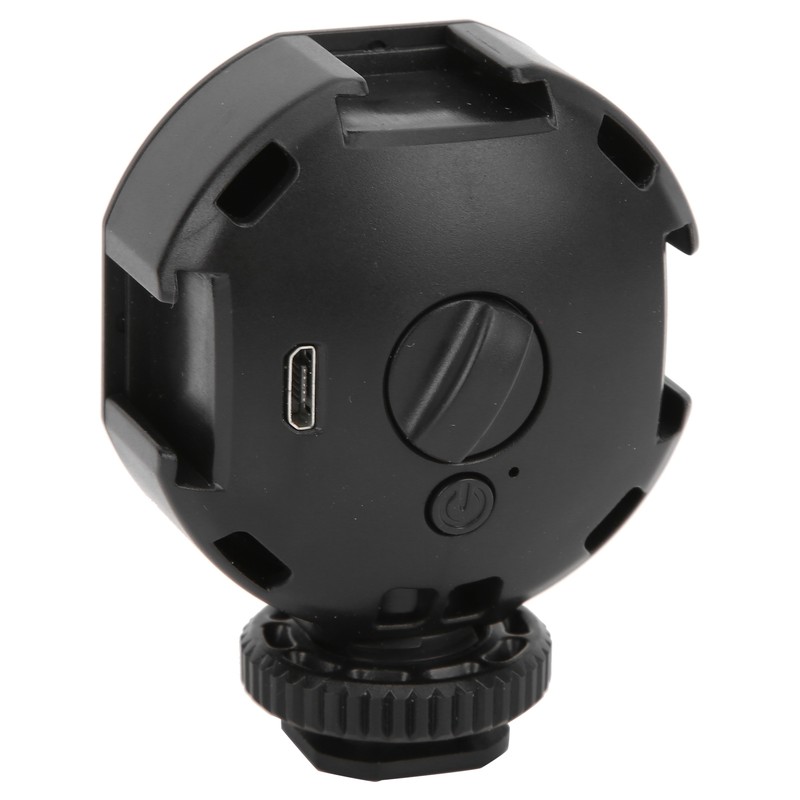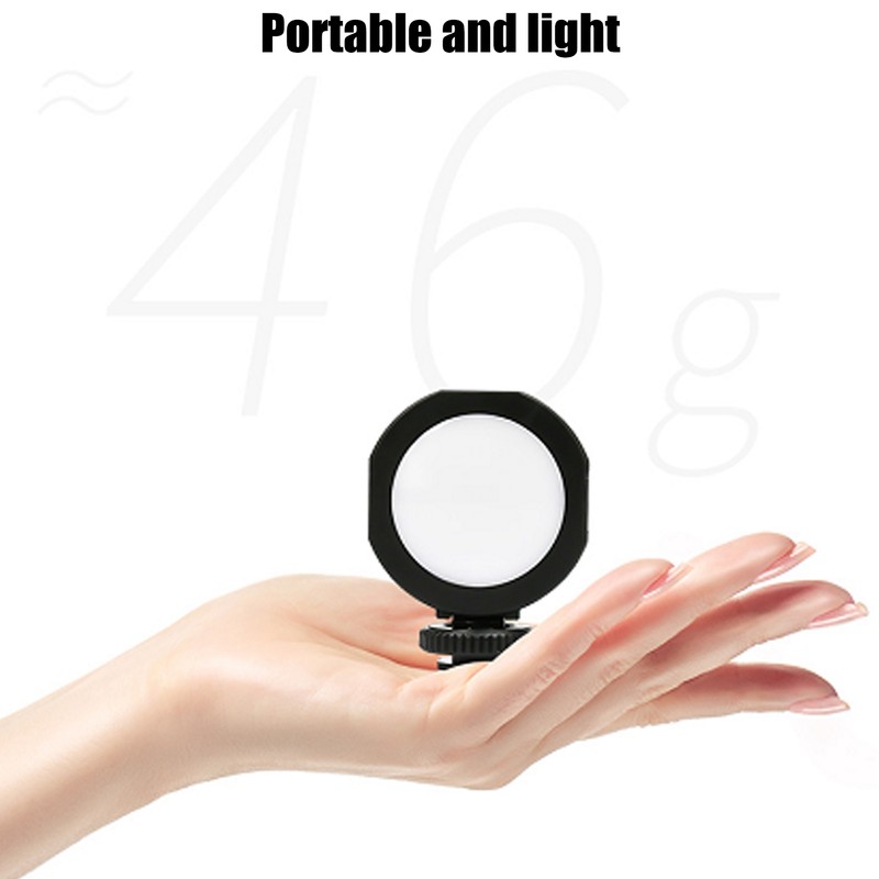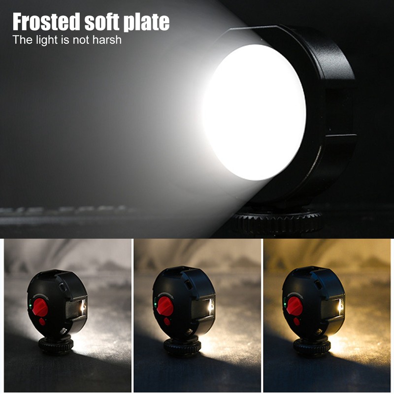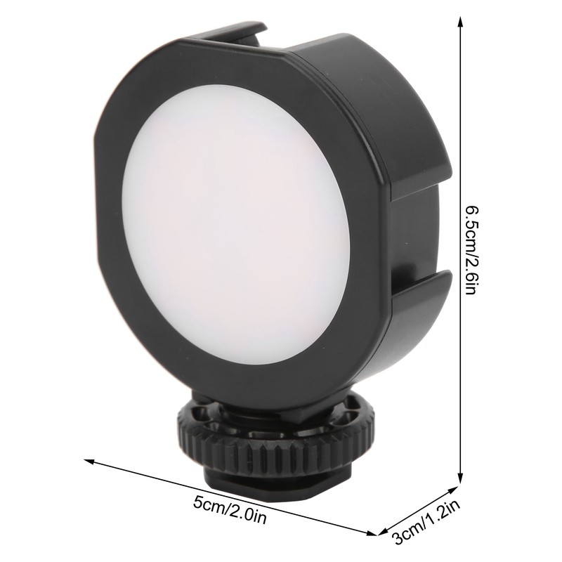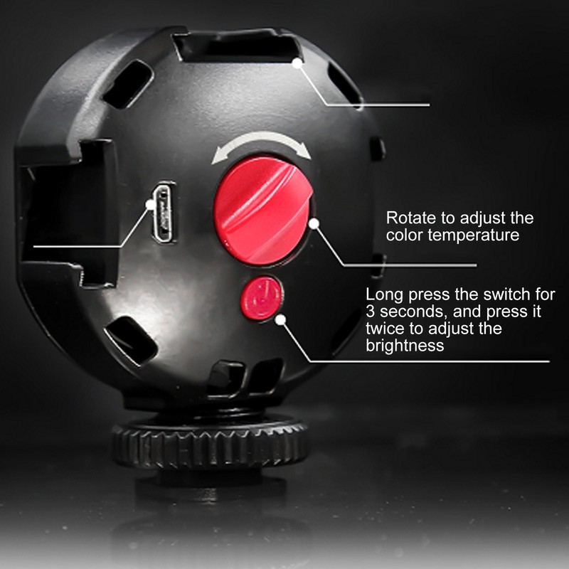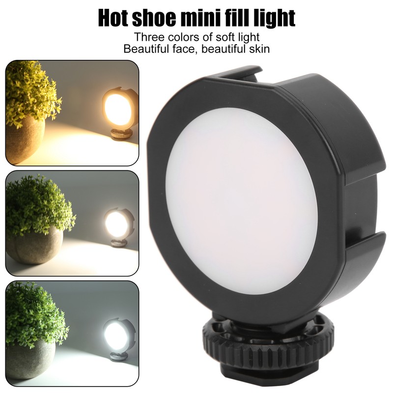 1、Made of ABS material, the material is good, the whole feel comfortable. 2、There are three cold shoes and a hot shoe, can be installed microphone, tripod and other equipment. 3、Fill light back knob type control light, five gears can be adjust, can adjust appropriate light source at any time. 4、Small in size, easy to carry, and can be used as a lamp, suitable for meeting minutes and other situations. 5、3000‑6500K color temperature, warm light, white light and warm white light 3 light modes to switch.