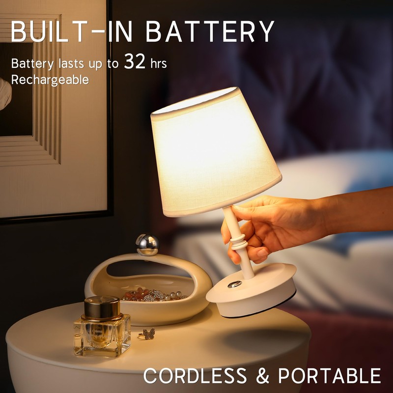 - 【Protect Your Eyes】battery operated lamp Optimal height and open-top linen fabric lampshade can soften and diffuse beams, light streams down, up or through the shade to illiminate your room without glare. table lamp great for bedroom, living room, office, etc. Contains high-quality data cable and charging head