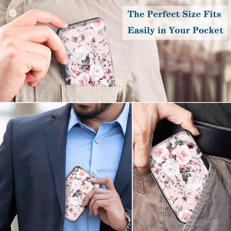 Mini Credit Card Holder for Women or Men,RFID Blocking Slim Hard Card Case ID Case Travel Wallet, Pink Flowers, Small