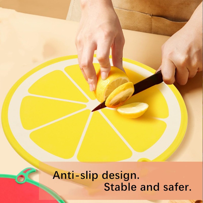 - 1.Material: This lemon chopping board is made of food-grade PP plastic, which is sturdy and not prone to deformation or cracking. Unlike wooden chopping boards, it does not absorb moisture or odors, ensuring that it is clean and hygienic every time it is used.