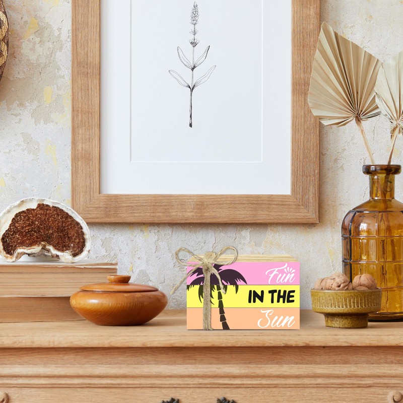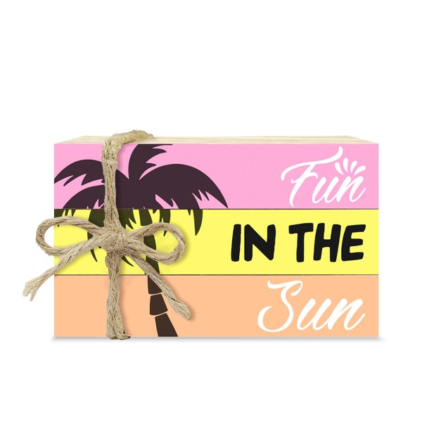 Mini Decorative Books For Home Decor, Small Holiday Beach Faux Wood Book Stack Decors, Fun In The Sun Hawaii Stack Book Decor, Stacked Display Book For Home Book Shelf Nightstand, Three Pieces -A(50)