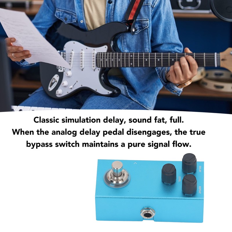 1、Classic Analog Delay: This delay pedal utilizes analog circuitry to replicate the classic analog delay sound, delivering rich and full tones that enhance your playing experience. 2、True Bypass Switching: When the analog delay pedal is disengaged, the true bypass switching ensures a pure signal flow, maintaining the integrity of your original tone. 3、Accuracy Effect Customization: Featuring dedicated time, mix, and feedback knobs, this pedal allows for accurate customization of the delay effect to suit your specific preferences and musical style. 4、Compact and Lightweight: The compact size and lightweight construction of this delay pedal, housed in a durable all aluminum alloy casing, make it easy and safe to carry in your pedalboard setup. 5、Versatile Sound Enhancement: With its ability to emulate classic analog delay, thicken and enrich your sound, this delay effect pedal is a versatile tool for musicians looking to add depth and texture to their music.