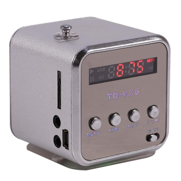 Mini Digital Speaker, Music Player, FM Radio, MP3, Portable, High Sensitivity, Easy Operation, USB Charging, Supports USB/SD/TF Cards, Great for Home, Car, Party, Sports, Traveling (Silver)