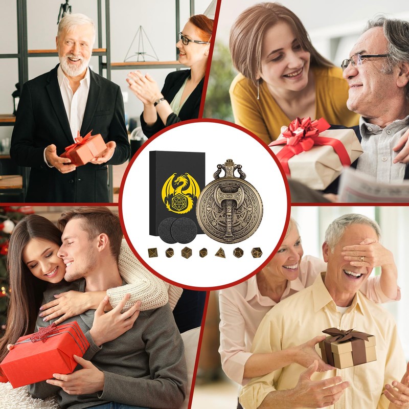• DND Gift Set: The Mini DND Dice Pocket Watch Set is a practical and unique DND gift ideal for any DND player or collector, complete with gift box and greeting card, and makes a meaningful Christmas, Father's Day, birthday and Valentine's Day gift