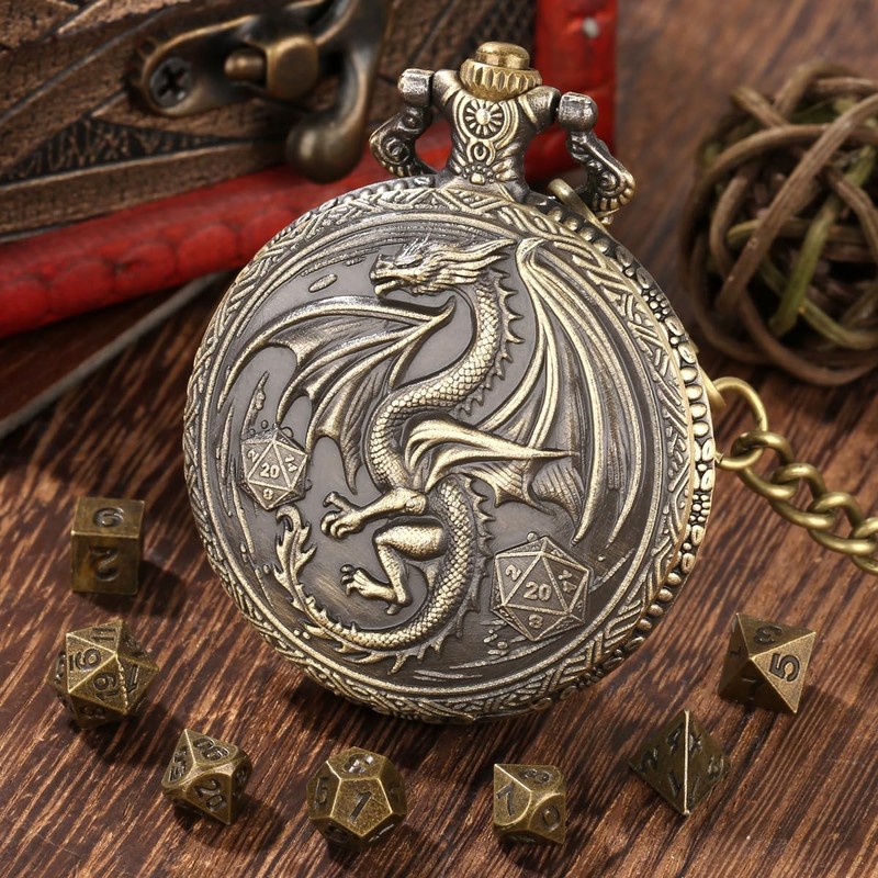 - DURABLE ZINC ALLOY CONSTRUCTION : Crafted from sturdy zinc alloy, this repurposed winged flying dragon pocket watch case ensures your precious mini dice set remains protected and secure, withstanding the rigors of travel and everyday use, ensuring longevity and lasting enjoyment.