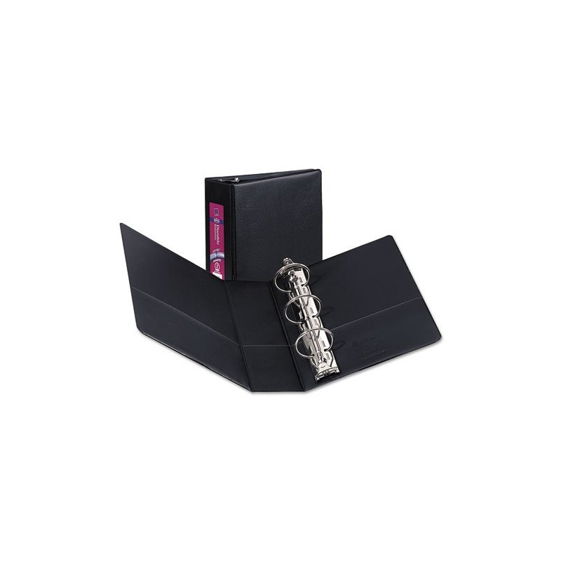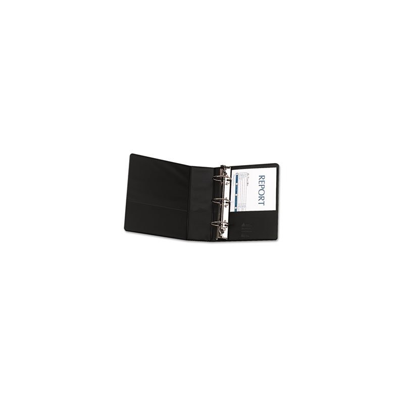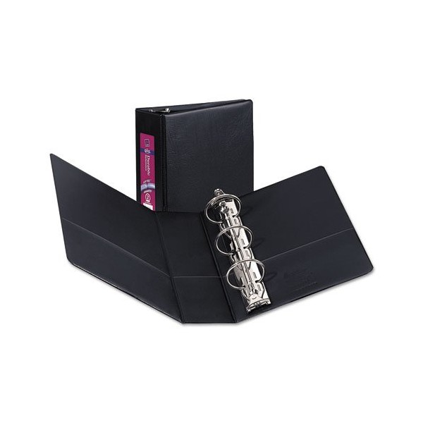 Compact size helps you organize your day?ideal for note-taking and it fits comfortably in smaller bags, briefcases and glove boxes. Durable construction for frequent reference. Two interior pockets for organization. Panels cover standard dividers and sheet protectors. Pages lie flat with back mounted rings. For quick identification of contents. Capacity Range [Max]: 2""; Sheet Capacity: 375; Color(s): Black; Binder Sheet Size: 5 1/2 x 8 1/2.