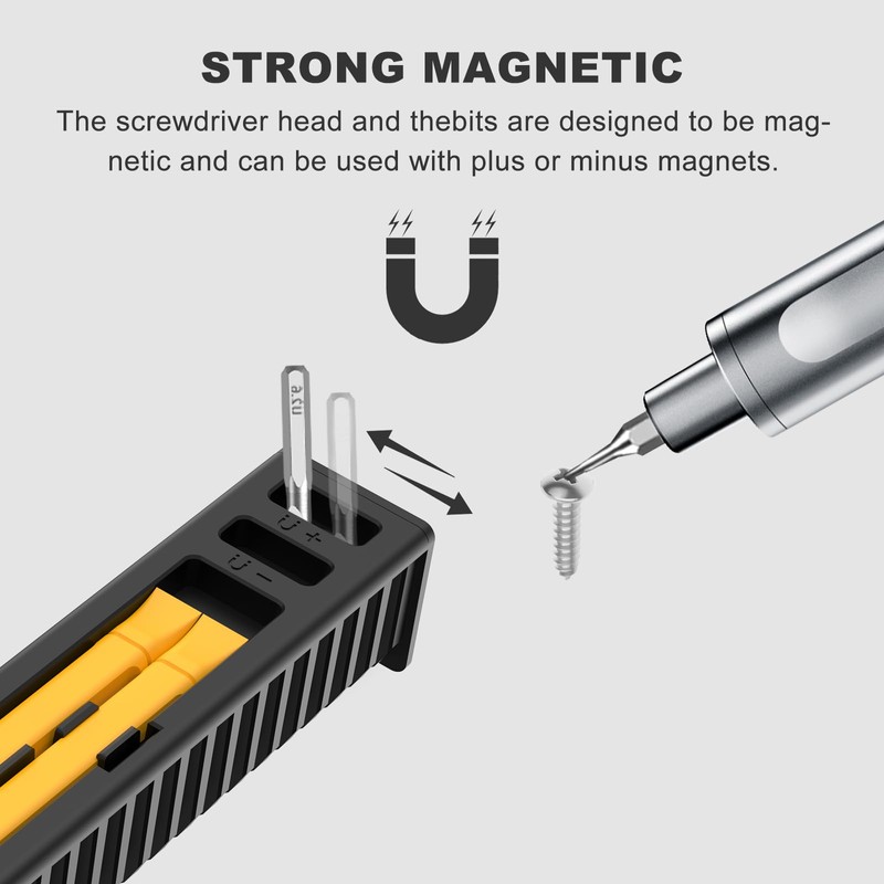 - Organized Magnetic Storage: The mini electric screwdriver set comes with a compact magnetic case that keeps the screwdriver and its 42 bits neatly organized. The case features a convenient pop-up mechanism, providing a satisfying experience with each open and close. Both the chuck and the bits are magnetic, allowing for easy attachment and stability