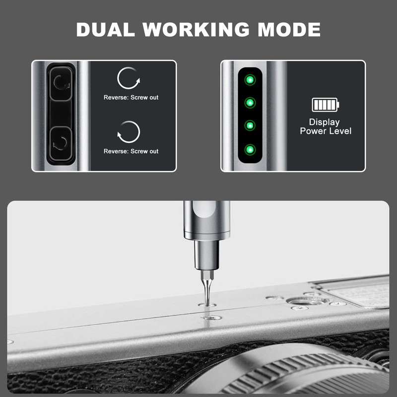 - Complete Tool Kit: 1x Small Electric Screwdriver Set, 1x Magnetic Storage Case, 42x Precision Bits (refer to the image for all included bits), 1x Tweezer, 1x Pry Bar, 1x USB Type-C Charging Cable,1x User Manual