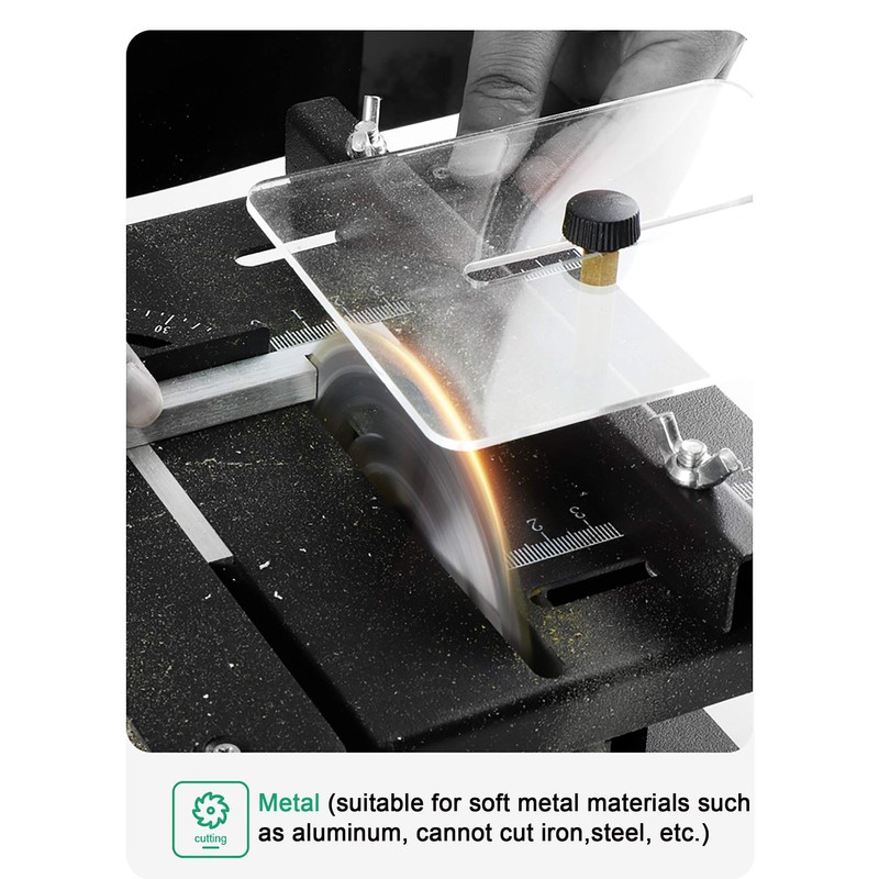 5.Please note that this mini table saw cannot cut iron, copper, and other high-hardness metals.