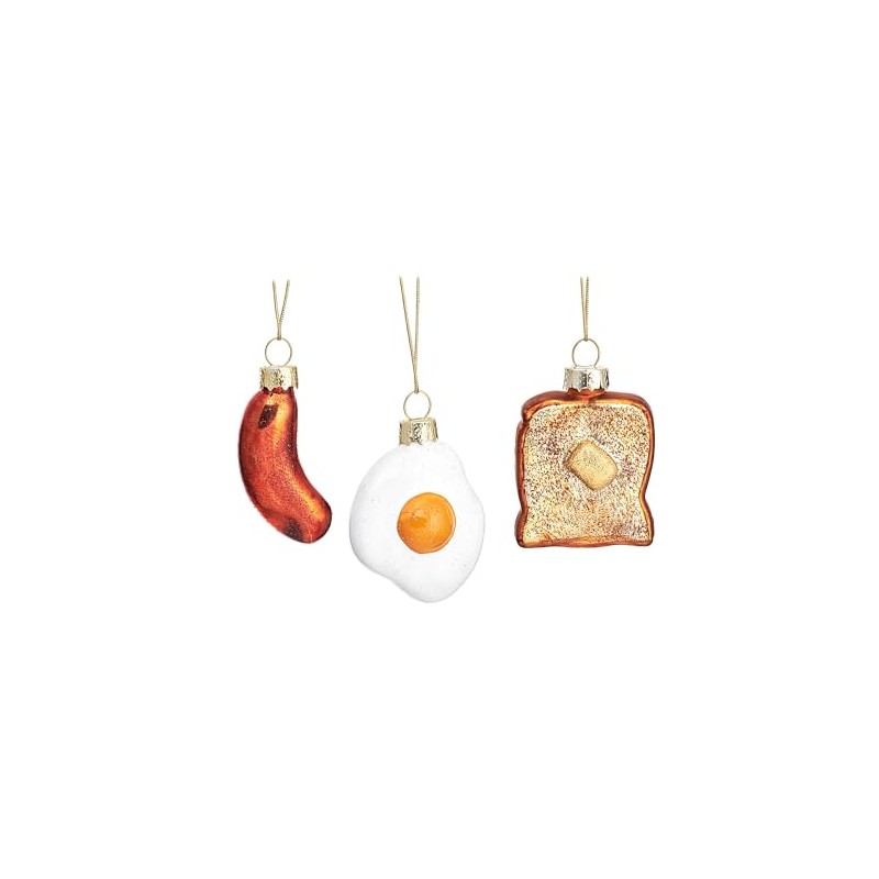 These adorable baubles feature miniature versions of classic English breakfast items, including a fried egg, bacon, and toast, all crafted from durable materialls and finished with shimmering accents. Hang these baubles on your tree for a whimsical and unique touch.