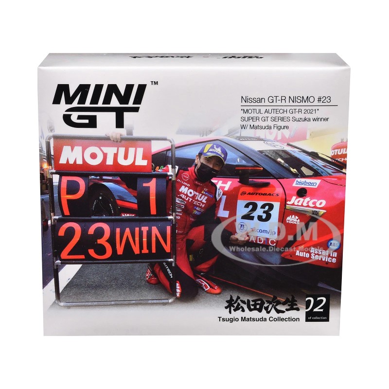 - Brand new 1/64 scale diecast car model of Nissan GT-R NISMO #23 Tsugio Matsuda - Ronnie Quintarelli "MOTUL AUTECH" Winner "Suzuka - Super GT Series" (2021) with Matsuda Figure Limited Edition die cast model car by Mini GT.
