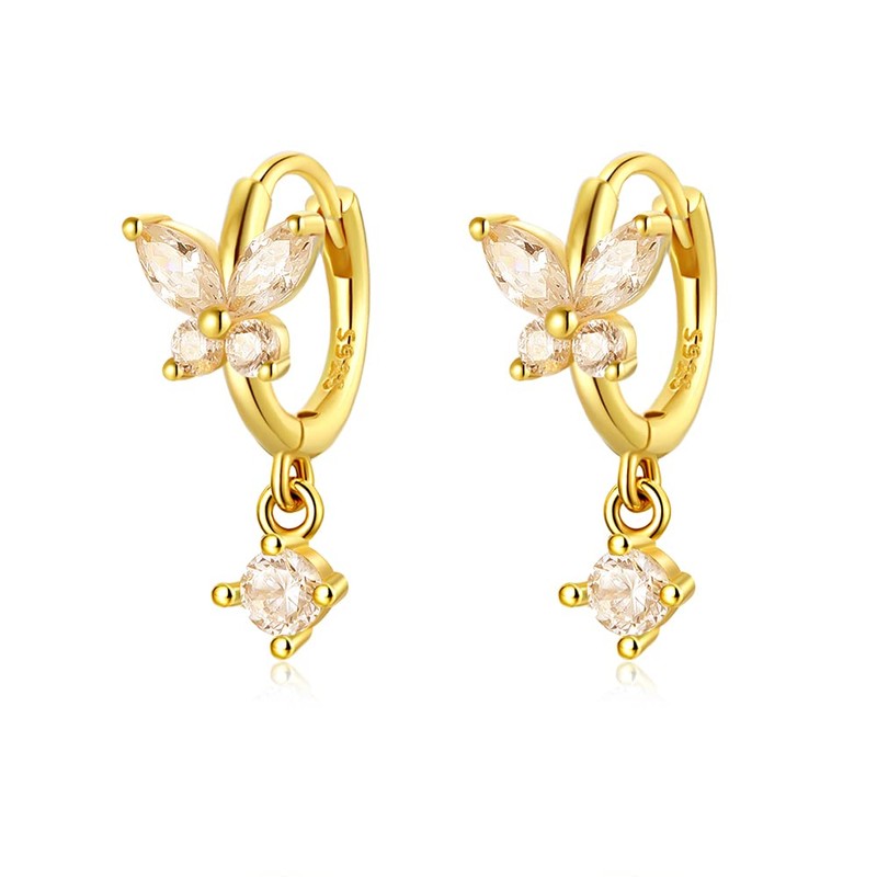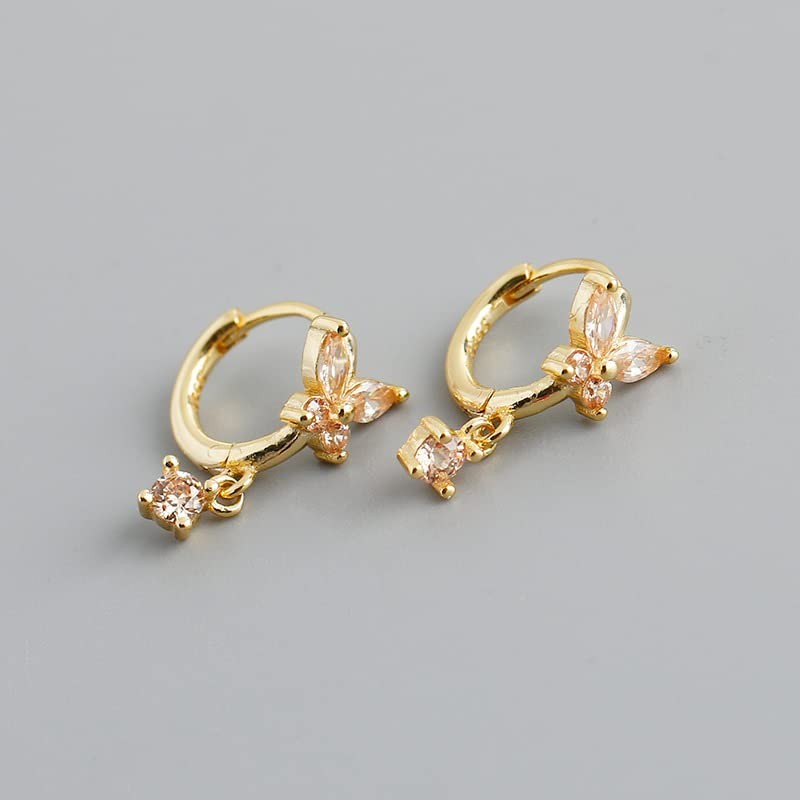 Mini Huggie Hoop Earrings With Dangle Charm 925 Sterling Silver Gold Tiny Small Cz Cubic Zirconia Butterfly Flower Dangling Hoop Earrings