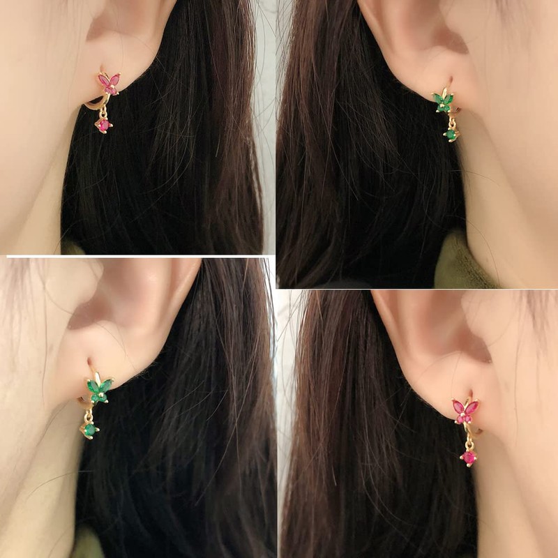 • Flower Butterfly Charm Huggie Hoop Earrings, Cute Design, Small Size, About 8mm Inner Diamter.