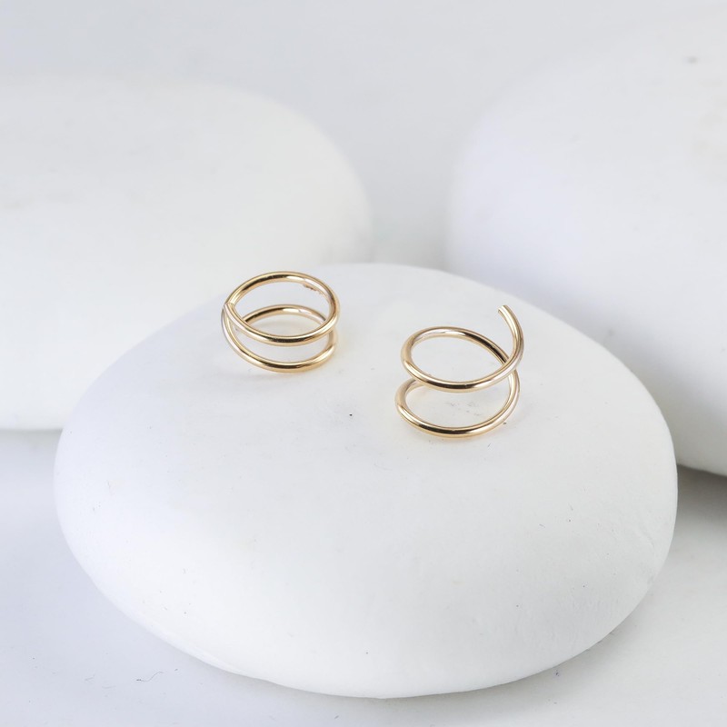 Mini Illusion Gold Hoops, Make 1 Piercing Look Like 2, Minimalist Double Hoops in Sterling Silver, Rose Gold and Gold Filled, Gifts for Women by Lotus Stone Jewelry (Gold, Spirals)